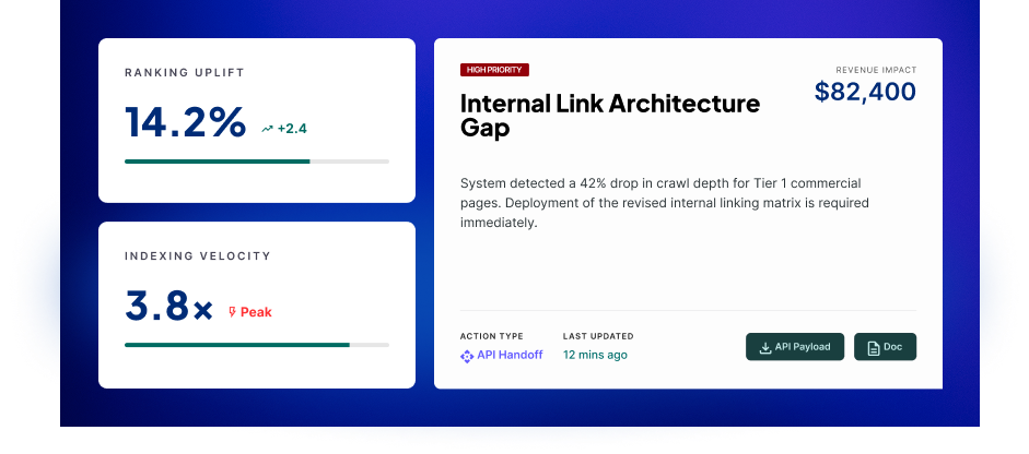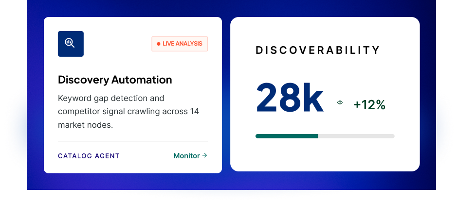 Automate repeatable discovery, prioritization, documentation, and monitoring workflows to reduce the manual burden traditionally carried by SEO analysts, catalog analysts, and coordination-heavy growth teams.